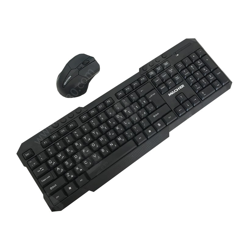 ست موس و کیبورد بی سیم مچر مدل MR-415 یکی از محصولات ست می باشد که به صورت بی سیم تولید شده اند و از طریق دانگل USB ای که دارند تا طول محدوده 10 متر می توانید به آن ها متصل شوید. از مزیت های این ست این است که بر روی کلید ها حروف فارسی حک شده است و به شما کمک می کنند تا در هنگام تایپ کردن فارسی راحت تر باشید.